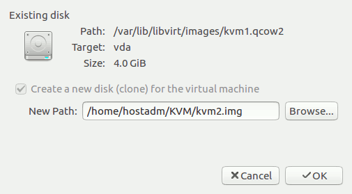 then specify the new path: /home/hostadm/KVM/kvm2.qcow2
