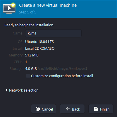 Logout from the desktop, then login again. Create directory KVM within your home directory and download the installer, ubuntu-18.04.4-server-amd64.iso