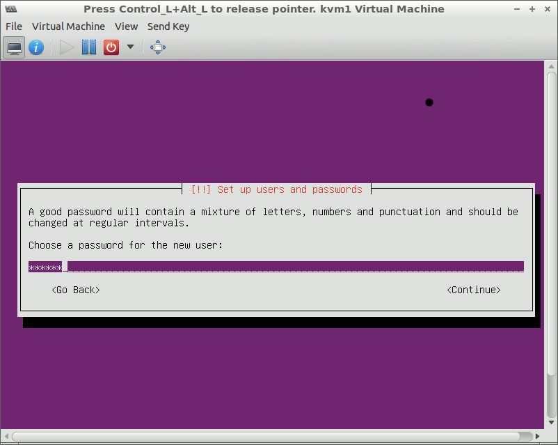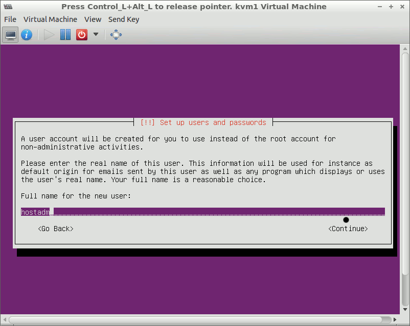 When the installer prompts you, set a new user account,