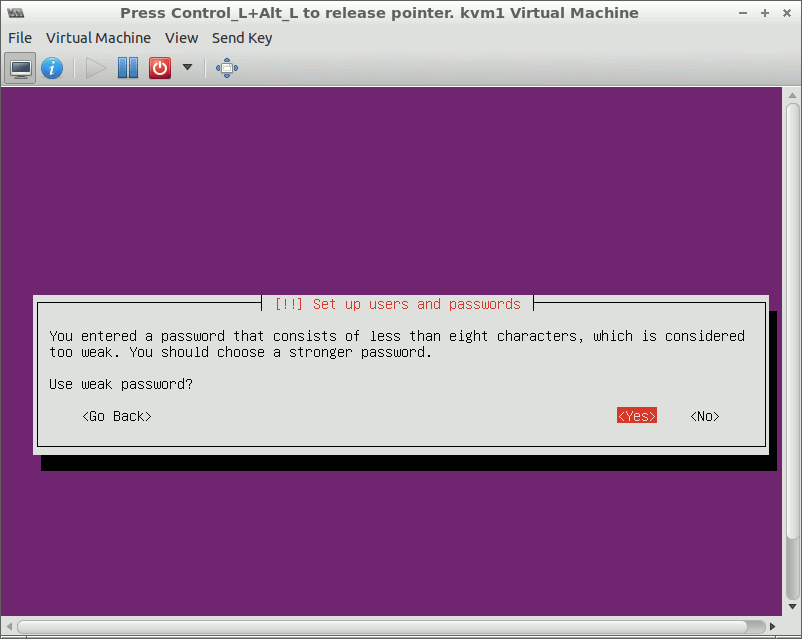 Accept the “weak password” when prompted.